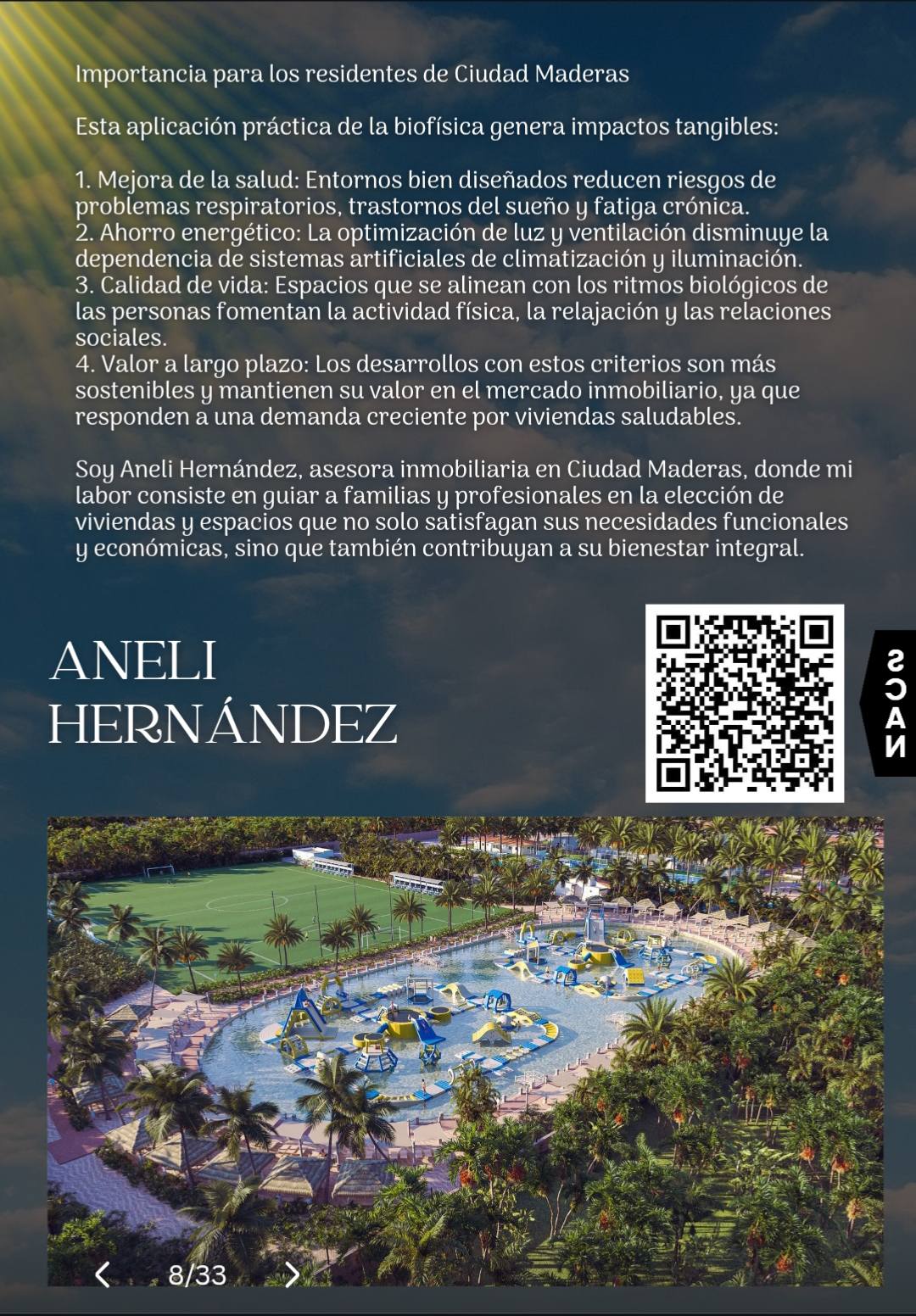 Aneli Hernández: Mi labor es acompañar a las personas a elegir espacios que realmente transformen su día a día. No se trata solo de comprar una propiedad, sino de invertir en bienestar, en salud y en calidad de vida a largo plazo.